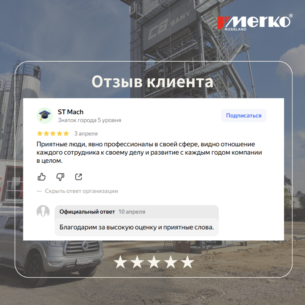 Компания «Мерко Руссланд» специализируется на поставках современных, высокотехнологичных, экологически безопасных асфальтобетонных заводов, а также различного оборудования и комплектующих для модернизации и доукомплектации, эксплуатируемых в настоящее время, асфальтобетонных заводов.